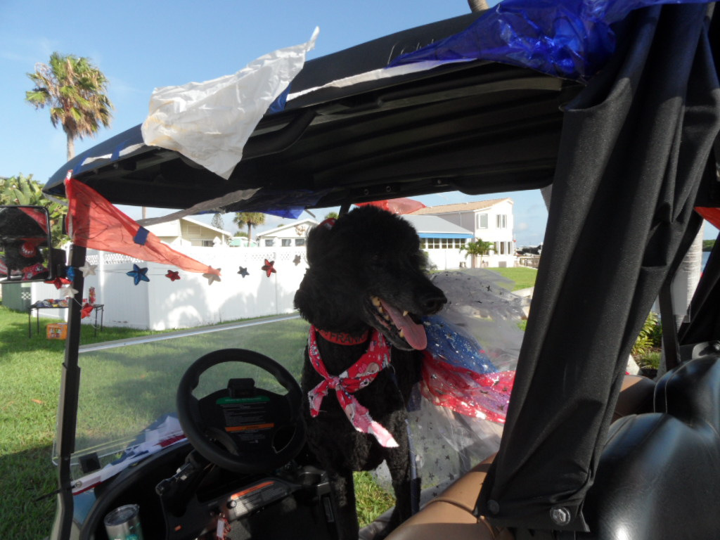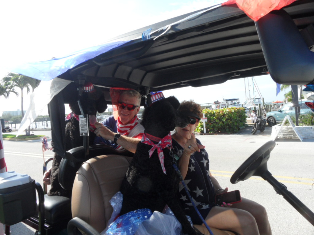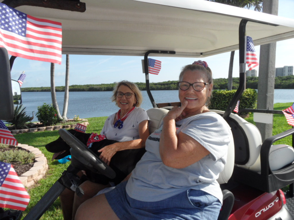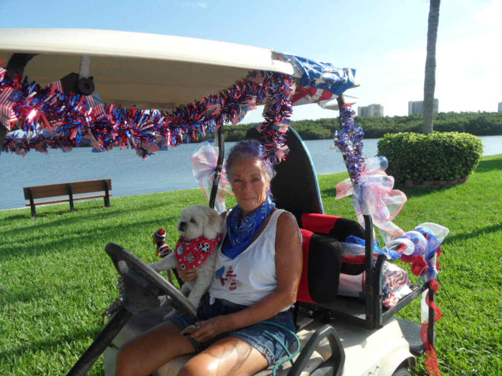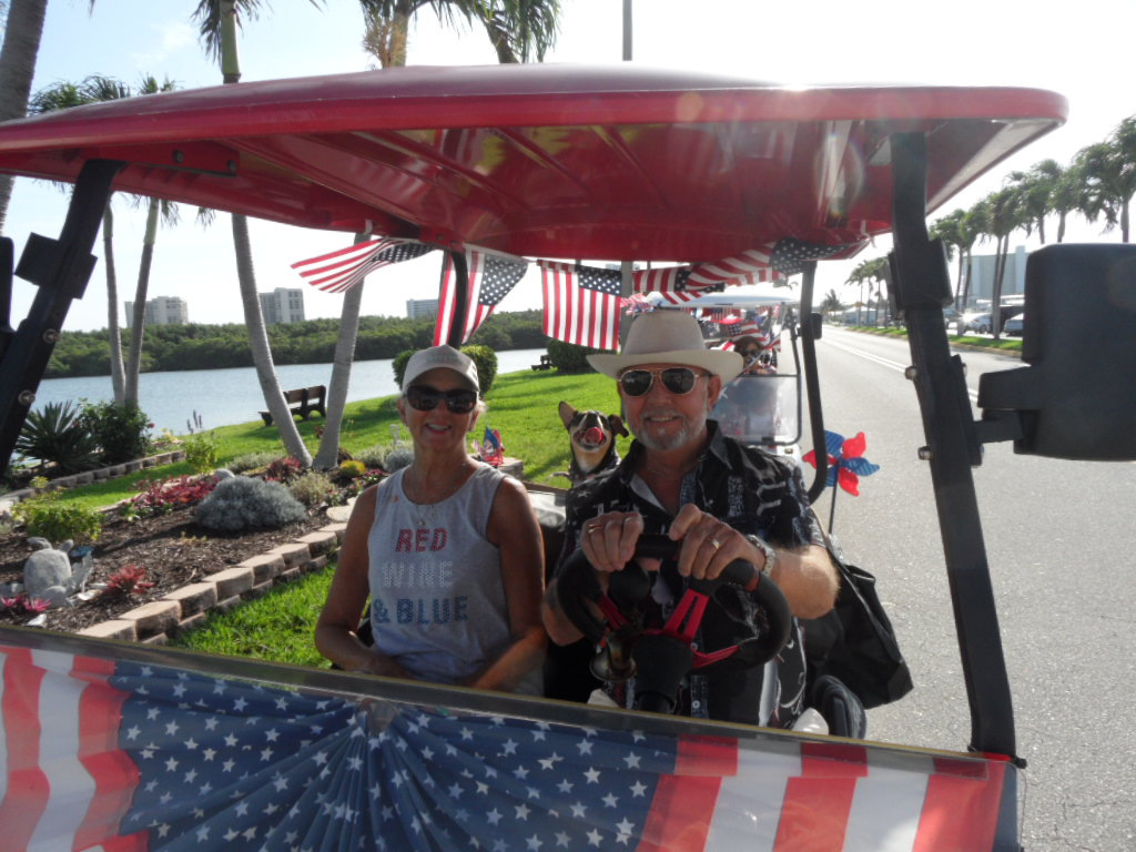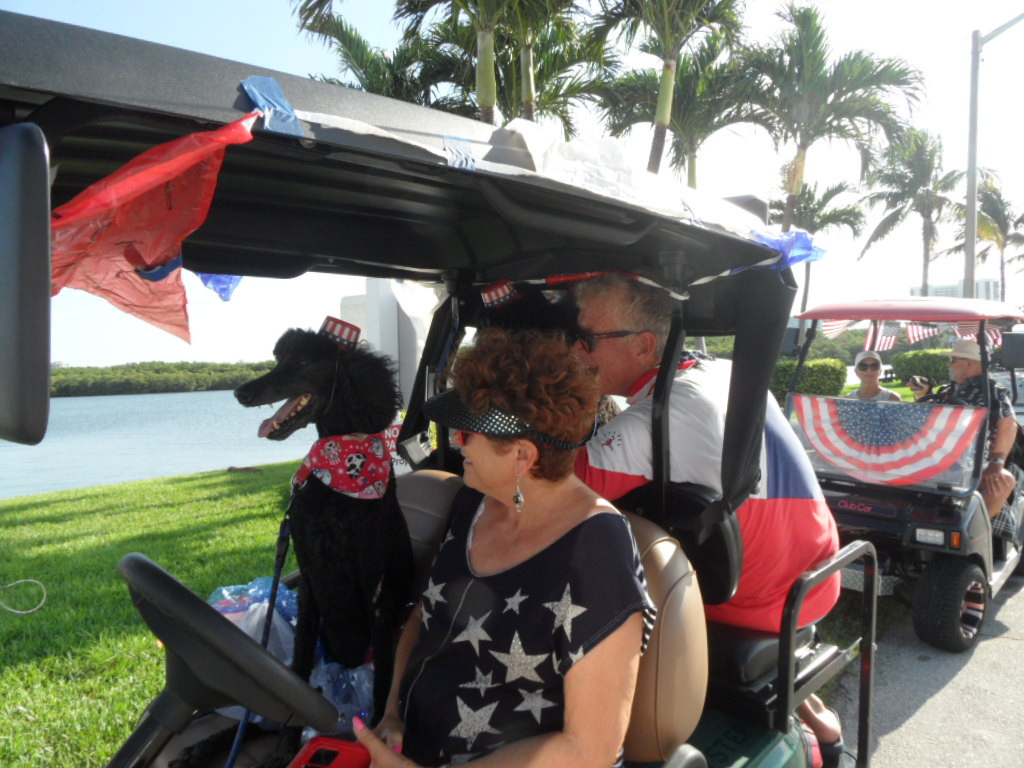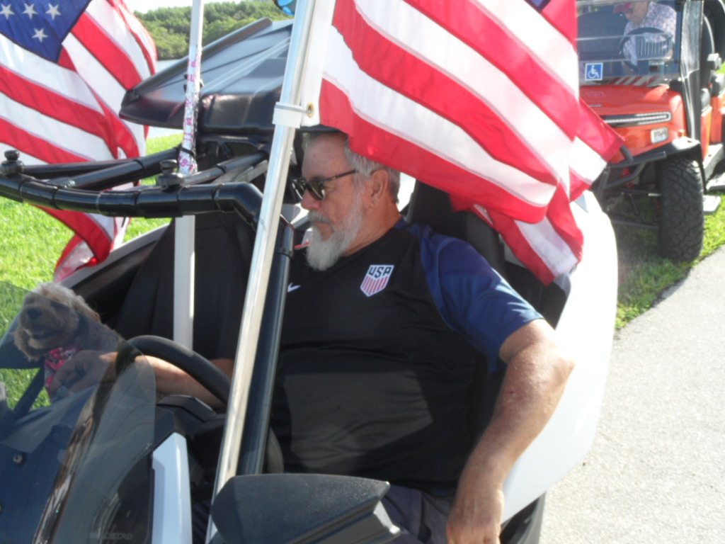 w/ 9 patriotic decorated  golf carts ,20 members and 10 dogs