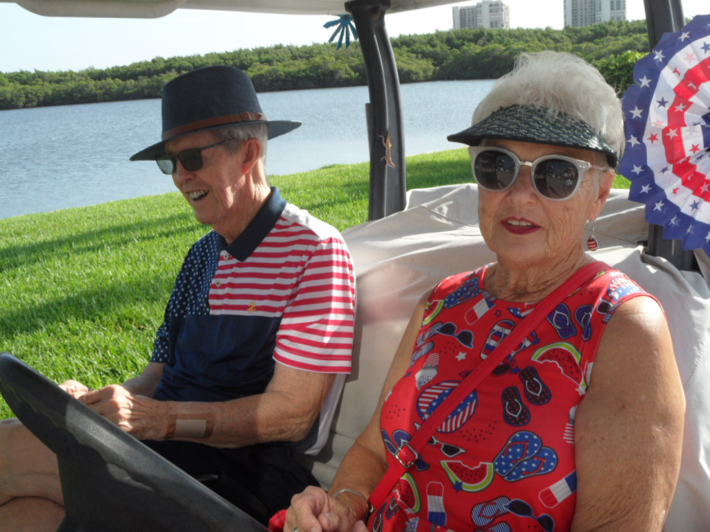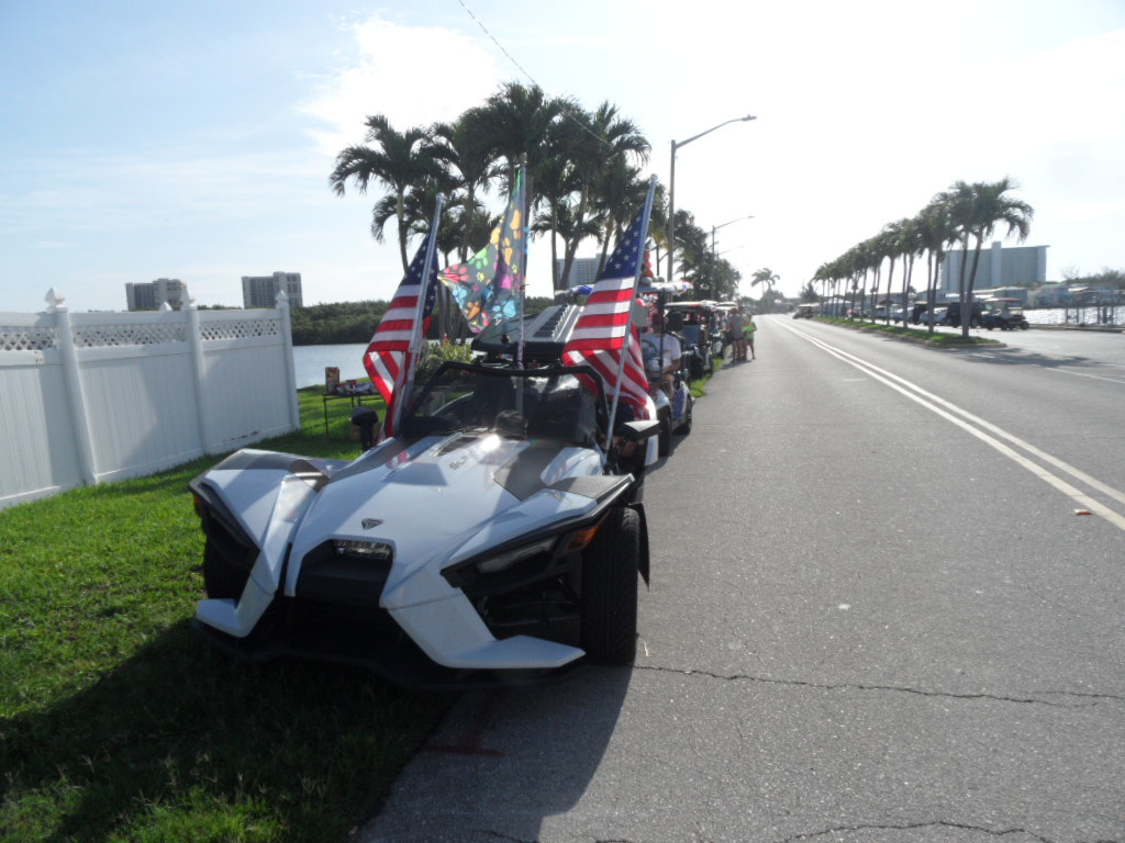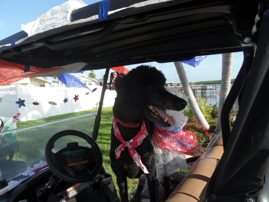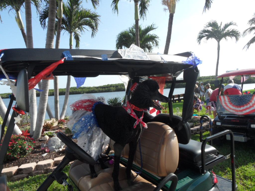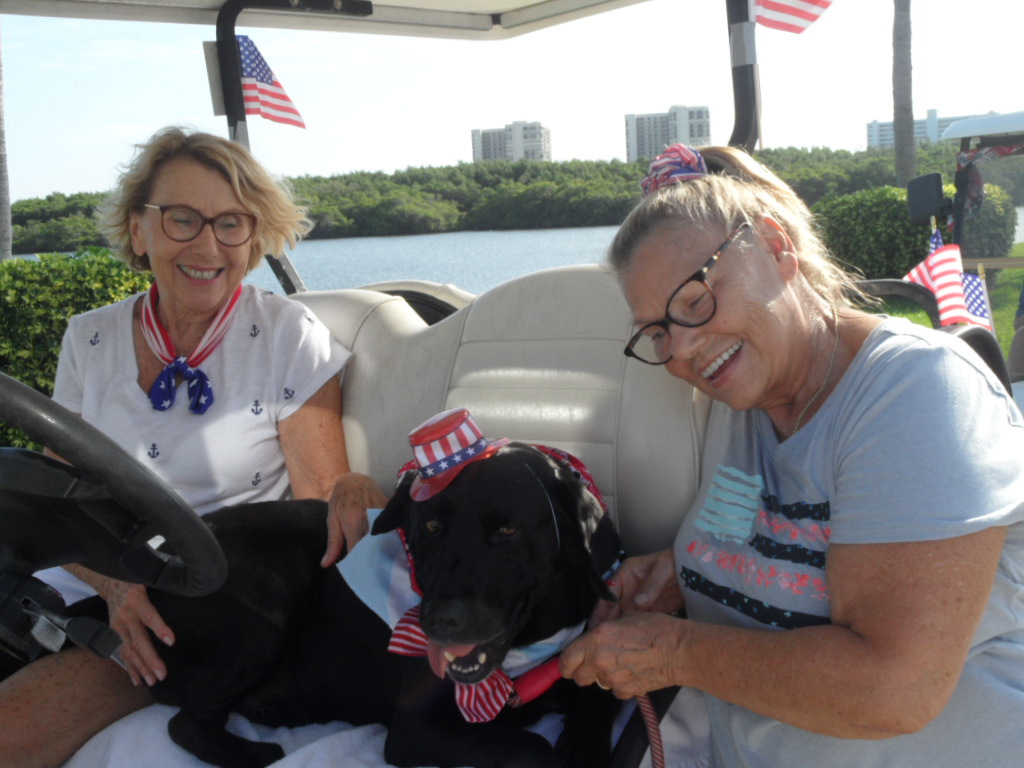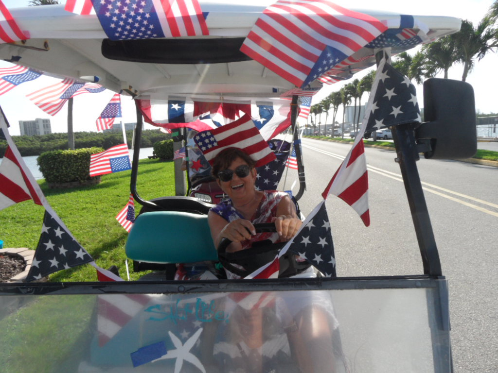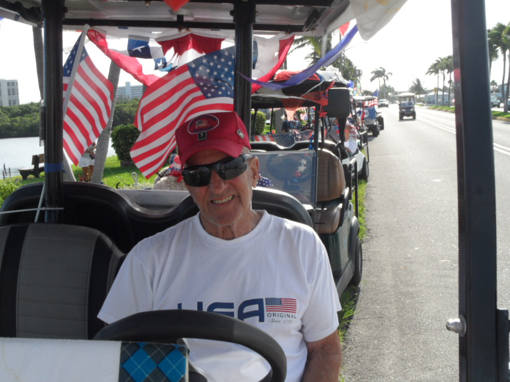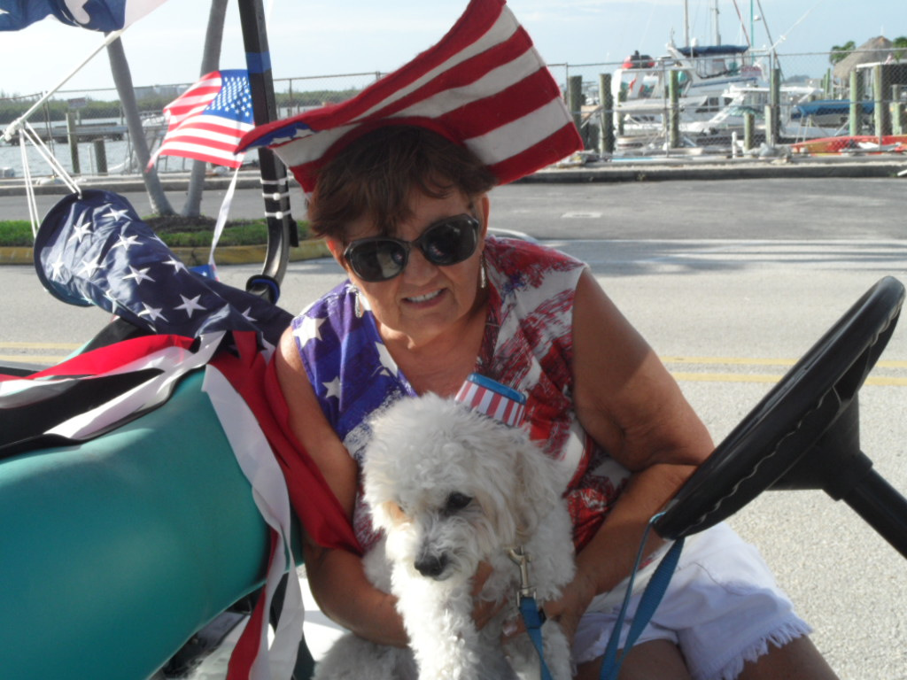 w/ 9 patriotic decorated  golf carts ,20 members and 10 dogs