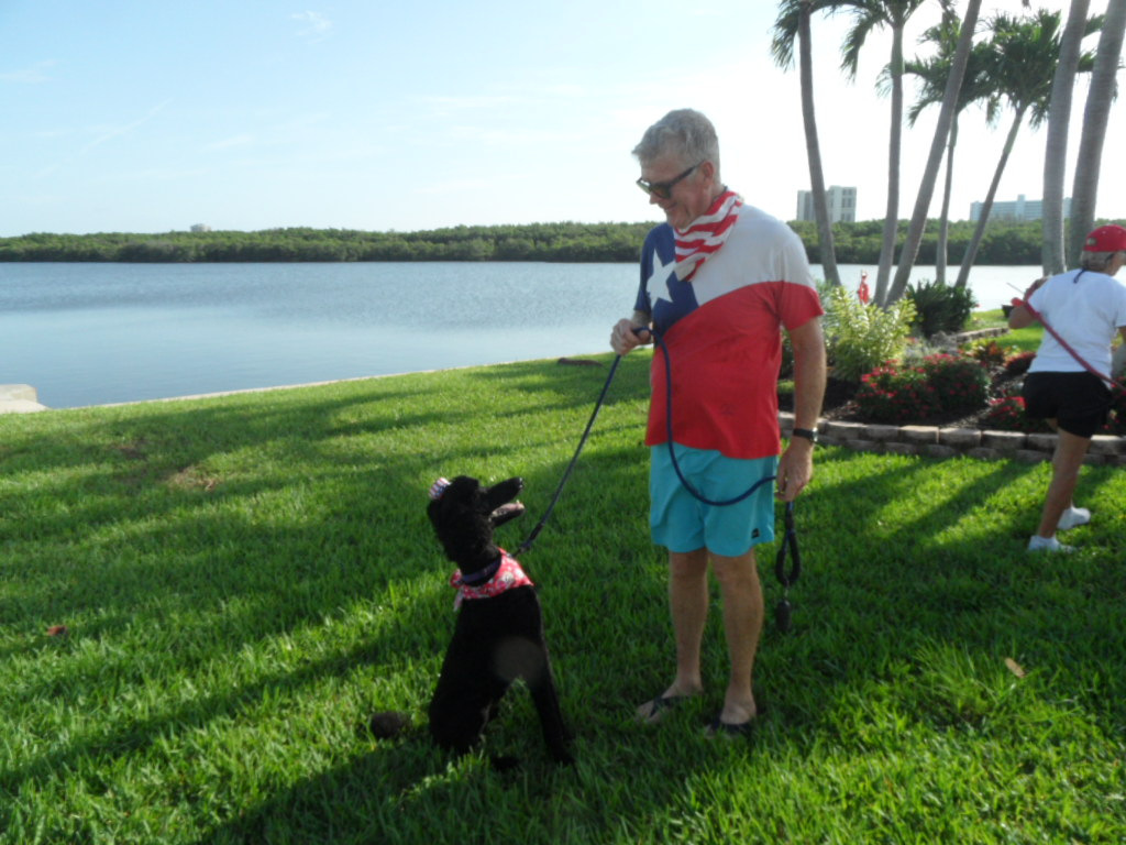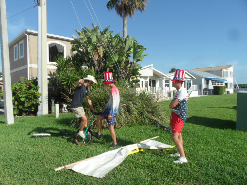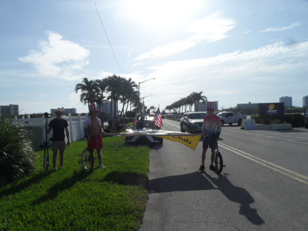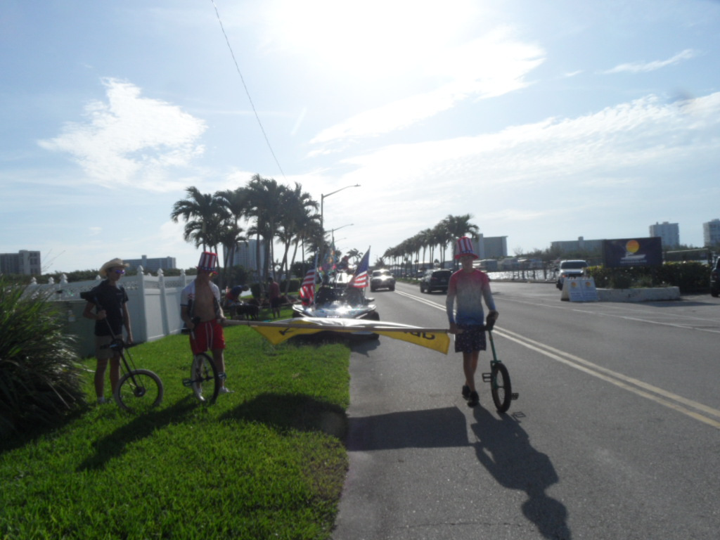 on a hot, humid July 4th morning. And …the Robinson boys cycling  the way w/ K-9 Clubs banner !